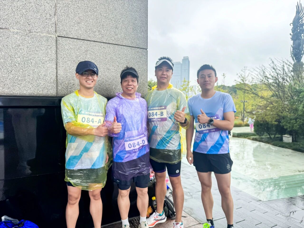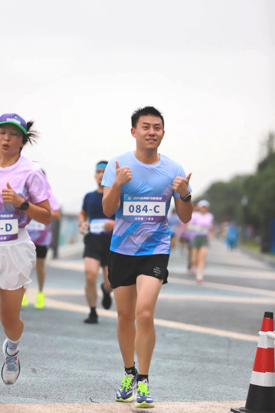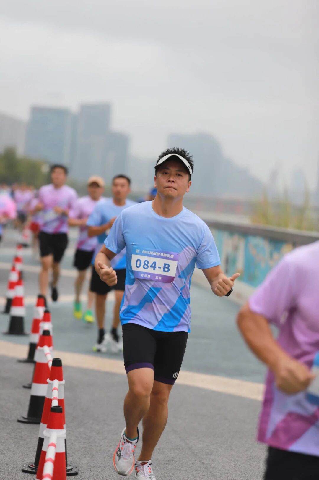 賽中,他們保持穩(wěn)定的配速,沿之江綠道穩(wěn)步前行。雨水模糊了視線,卻從未打亂奔跑的節(jié)奏。最終,所有人依次沖過終點,圓滿完成挑戰(zhàn)。