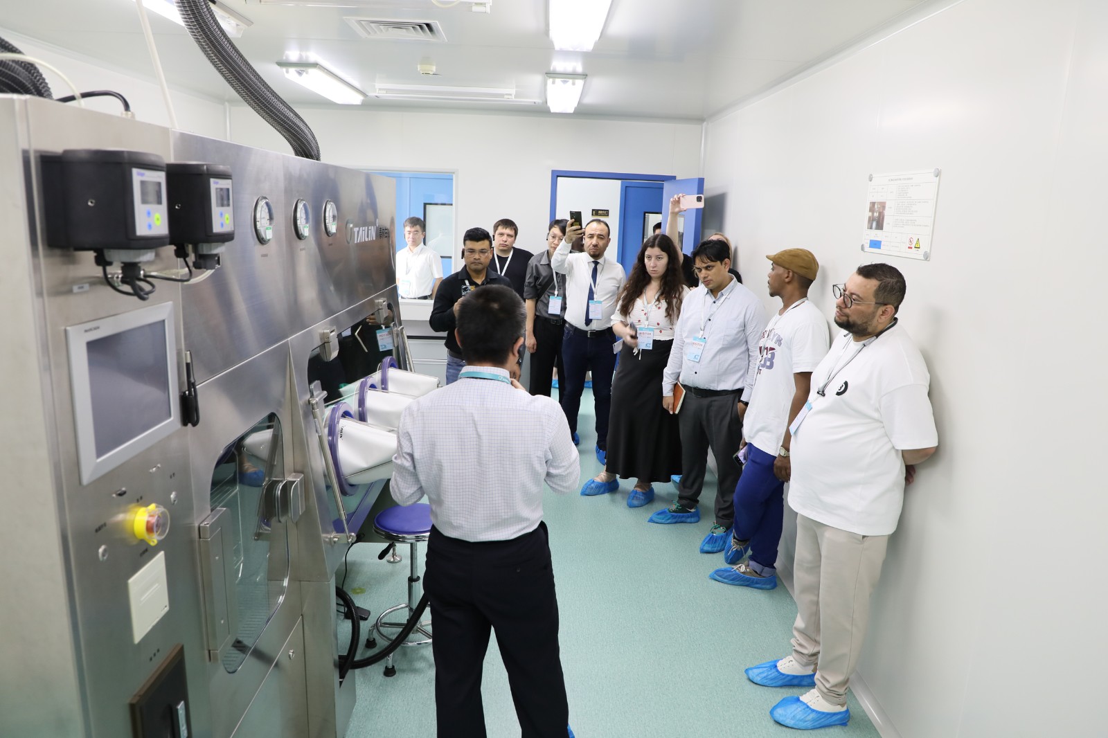 創(chuàng)新與高效的交響,離不開(kāi)匠心的堅(jiān)守。在工廠參觀環(huán)節(jié),海外客戶實(shí)地深入了解無(wú)菌隔離技術(shù)、細(xì)胞與基因制備生產(chǎn)、智能微生物檢測(cè)、核藥藥品無(wú)菌制備、無(wú)菌檢測(cè)、微生物檢測(cè)、膜過(guò)濾等領(lǐng)域重點(diǎn)產(chǎn)品生產(chǎn)制造的各個(gè)環(huán)節(jié)。在這里,領(lǐng)先的自動(dòng)化產(chǎn)線、先進(jìn)的加工設(shè)備、綠色高效的制造體系不斷映入眼底,全方面、多維度展示著泰林生物對(duì)產(chǎn)品全生命周期的嚴(yán)格把控。海外客戶對(duì)泰林生物規(guī)?;闹圃鞂?shí)力贊不絕口,更堅(jiān)定了對(duì)泰林生物旗下產(chǎn)品的信心,期待后續(xù)對(duì)接更多項(xiàng)目的合作。