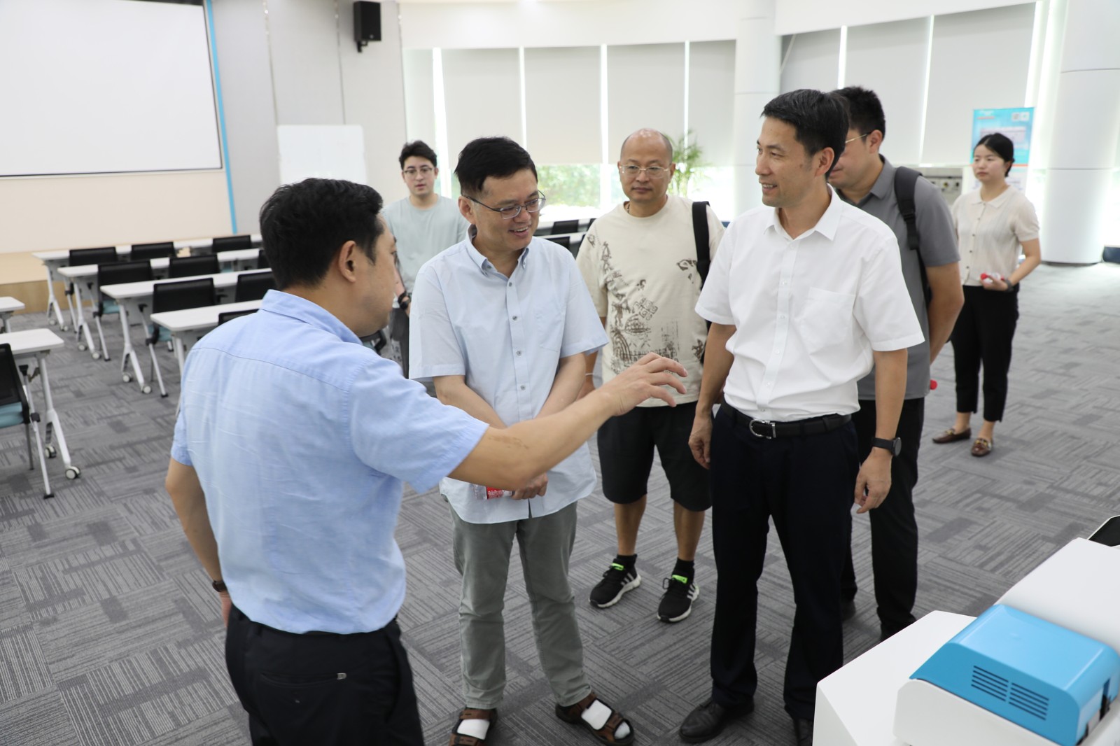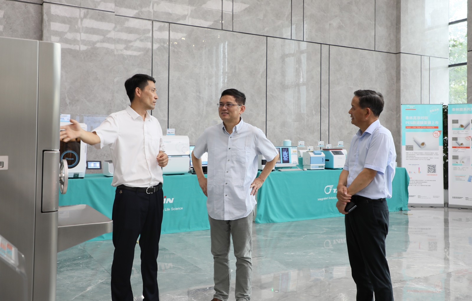 隨后,調(diào)研團(tuán)一行來到泰林生命科學(xué)園區(qū),相繼參觀了展廳產(chǎn)品區(qū)、膜技術(shù)生產(chǎn)車間、培養(yǎng)器車間、凍干車間和實驗室。沈總向?qū)<覀兘榻B了公司的技術(shù)成果、業(yè)務(wù)布局、發(fā)展規(guī)劃、創(chuàng)新應(yīng)用案例等情況,調(diào)研團(tuán)深入感受了“硬科技”加持的制造新力量。