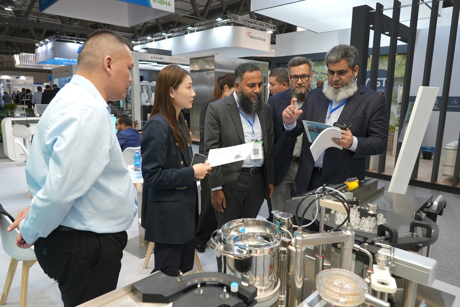 泰林生物作為生命科學(xué)領(lǐng)域“創(chuàng)新研發(fā)”和“新質(zhì)生產(chǎn)力”的代表,攜其旗艦產(chǎn)品無(wú)菌檢查隔離器、手套完整性測(cè)試儀、全自動(dòng)菌落計(jì)數(shù)系統(tǒng)、智能集菌儀、微生物檢驗(yàn)儀、濾芯測(cè)試儀等產(chǎn)品亮相,為行業(yè)呈現(xiàn)了一場(chǎng)數(shù)智科技場(chǎng)景成果盛宴。此次在海外展會(huì)首次璀璨亮相的微型液體灌裝機(jī),以其卓越的即用型灌裝加塞軋蓋系統(tǒng)ML FC,成為了全場(chǎng)矚目的焦點(diǎn)。MLFC極致縮小尺寸,以適合隔離器化趨勢(shì),滿足客戶在C級(jí)背景環(huán)境進(jìn)行無(wú)菌灌裝的需求。泰林生物依托數(shù)智科技,創(chuàng)新運(yùn)用自動(dòng)化、AI等新興技術(shù),深入挖掘用戶需求,打造出全場(chǎng)景全流程自動(dòng)化、數(shù)智化解決方案,滿足生命科學(xué)與高端裝備高質(zhì)量發(fā)展要求。