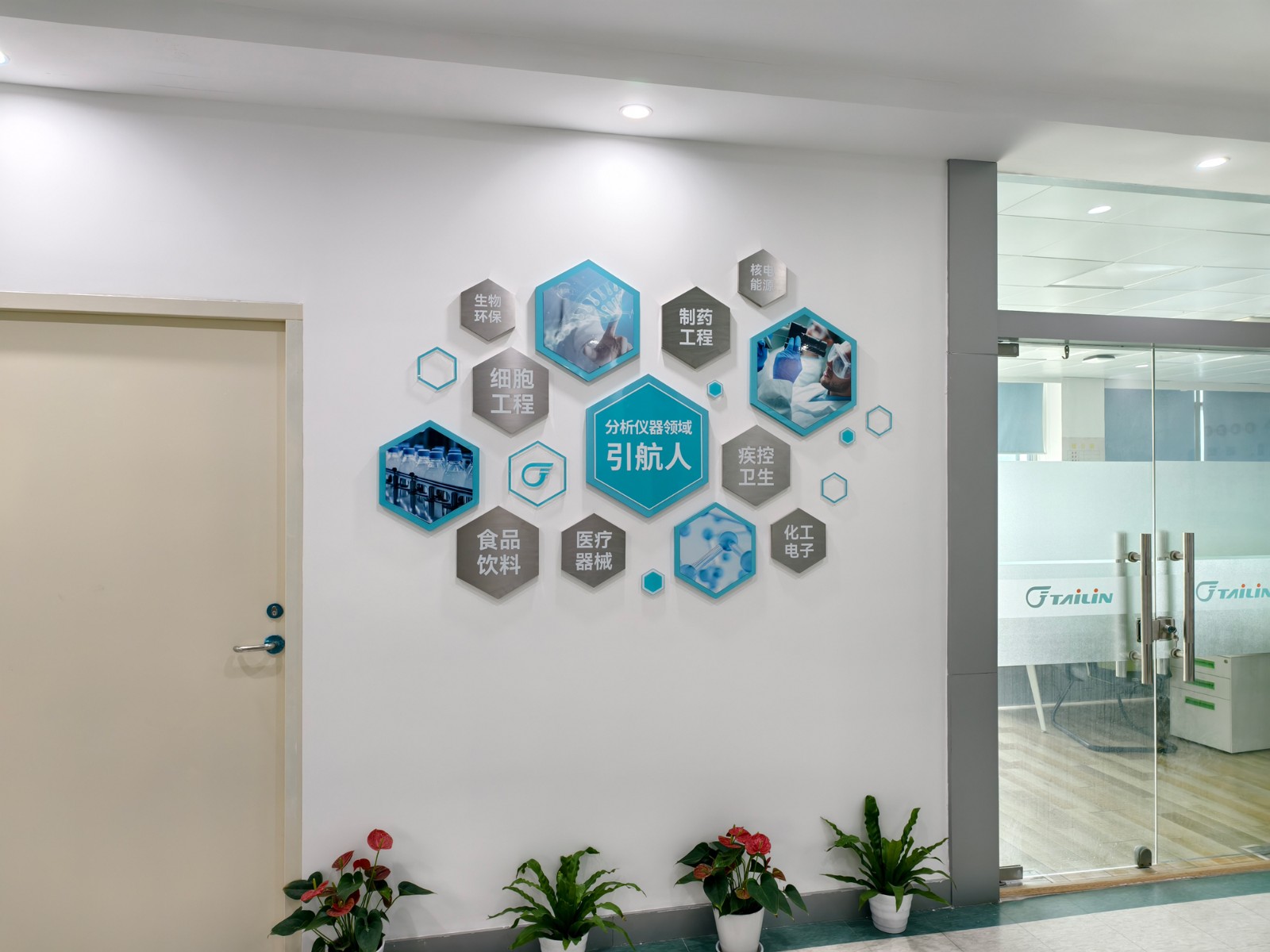 除此之外,分析儀器子公司內部的裝潢也煥然一新。一樓大廳形象墻全面升級,企業(yè)標識醒目突出,空間視覺更顯敞亮開闊,彰顯企業(yè)大氣風范;移步二樓,參觀路線經過精心優(yōu)化,新增榮譽墻與員工風采展示板塊,將員工成就與企業(yè)輝煌交相輝映,彰顯團隊凝聚力;沿途的形象燈箱設計更為簡約明亮,照亮訪客探索之旅。