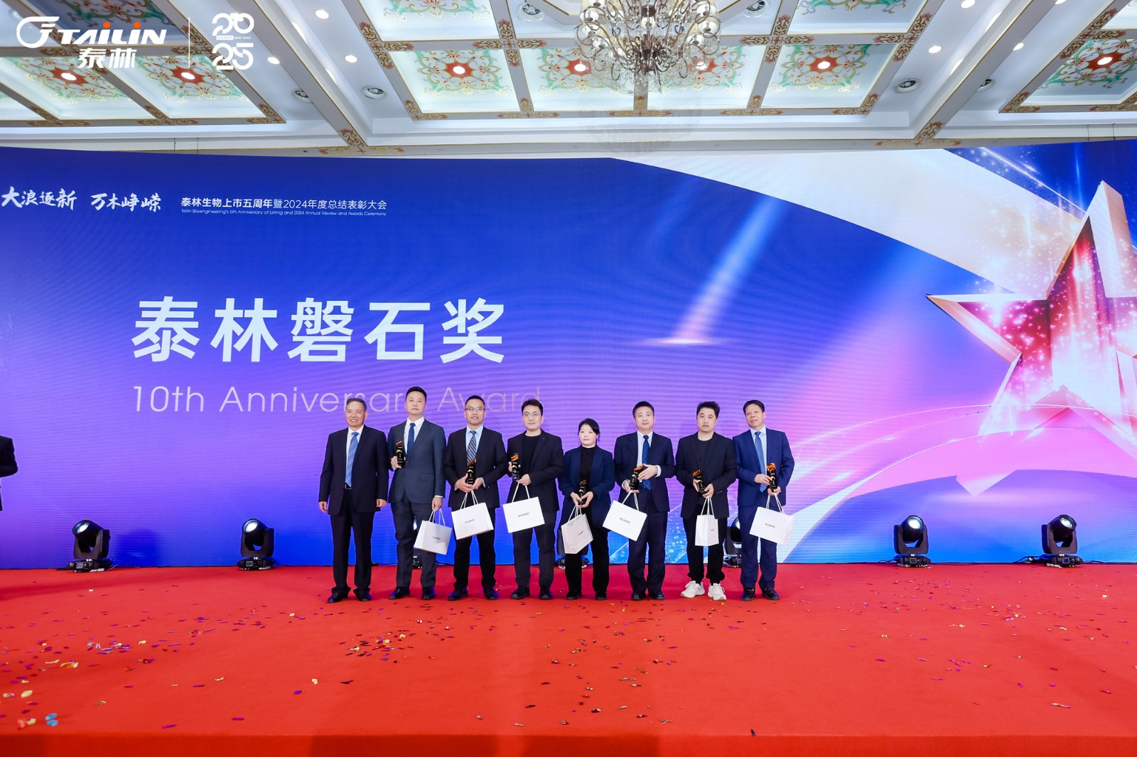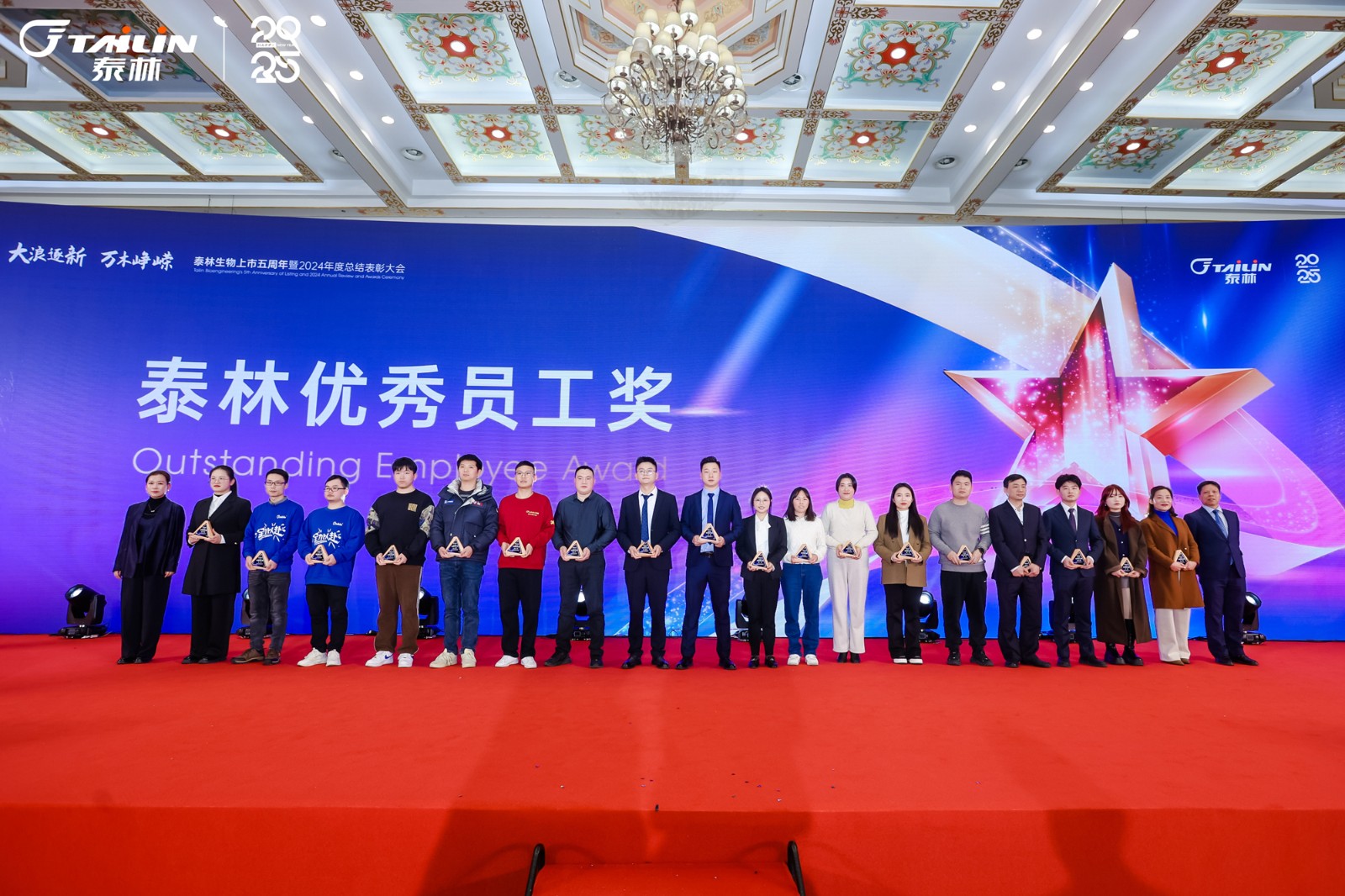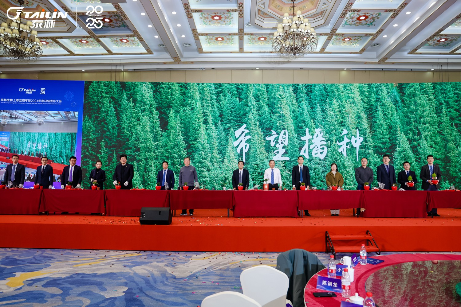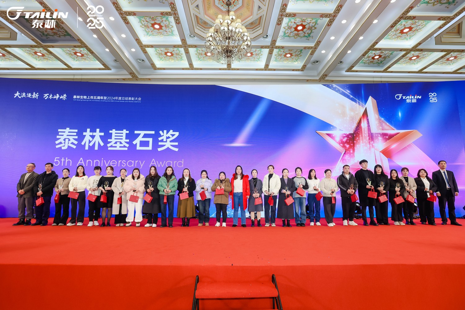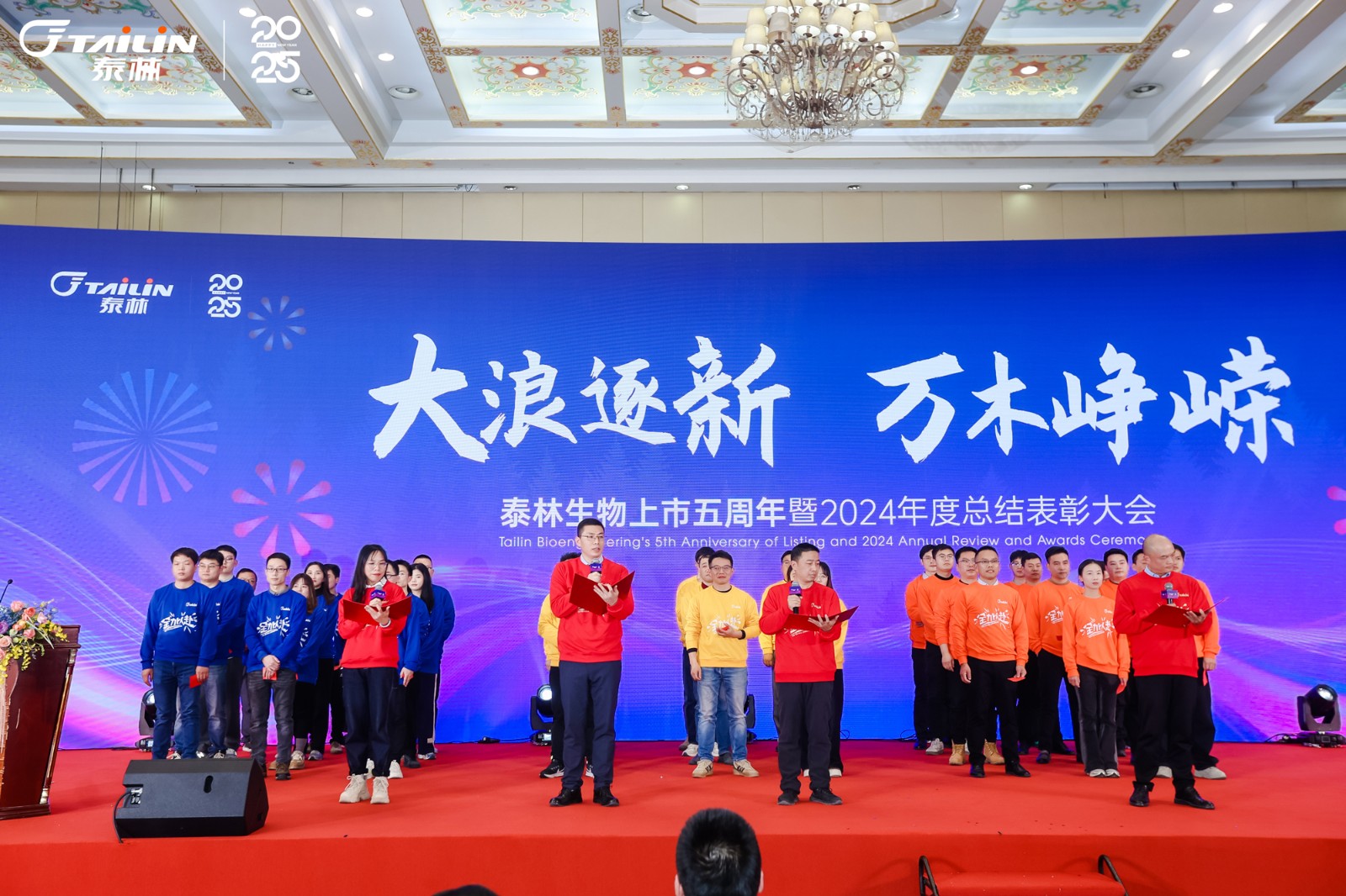 1月14日,“大浪逐新 萬木崢嶸”——泰林生物上市五周年暨2024年度總結(jié)表彰大會在一片熱烈而莊重的氛圍中拉開帷幕。浙江泰林生物技術(shù)股份有限公司董事長葉大林先生,浙江泰林生物技術(shù)股份有限公司副總裁沈志林先生、夏信群先生,浙江泰林生物技術(shù)股份有限公司董事倪崖先生、楊忠智先生共同出席盛典。泰林水生態(tài)領(lǐng)域合作伙伴江蘇宏眾百德生物科技有限公司總經(jīng)理孫蓓麗博士一行受邀到場。老友重聚,新友相逢,舉杯暢飲,共同回顧2024泰林奮進(jìn)之路!